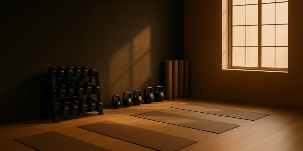 En Kine Studio hemos diseñado un lugar donde cada detalle importa. Nuestro estudio combina arquitectura minimalista, luz natural y un ambiente sereno para que entrenar se convierta en una experiencia única. No es un gimnasio masificado: es un espacio boutique en el corazón de Sant Andreu donde encontrarás calma, orden y material premium siempre a tu disposición.